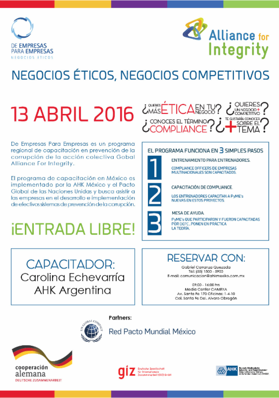 La Red Mexicana de Pacto Mundial de la ONU invita a las Pequeñas y Medianas Empresas adheridas al Pacto a participar en el Taller: