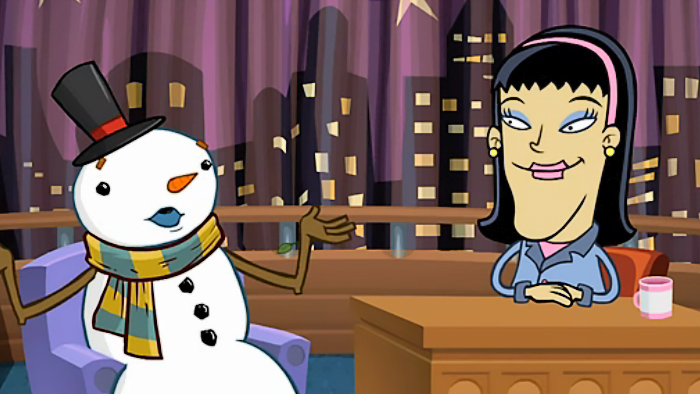 This video segment from Between the Lions is an animated non-fiction segment starring talk show host, Joy Learno. Joy interviews a snowman who likes to crack jokes about snow and ice. Then the snowman starts to melt. This video segment provides a resource for Vocabulary, and Language and Vocabulary Development.