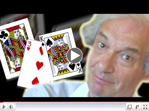 | Sorry to break it to you, bridge players, but your shuffling skills probably are incorrect. That's the takeaway from a fascinating new video from Persi Warren Diaconis, Professor of Statistics at Stanford University. Diaconis is a mathematician and former professional magician. His career as a professional magician began more than five decades ago, when he ran away from home at age 14 to go on the road with the sleight-of-hand virtuoso Dai Vernon. But unlike most magicians, Diaconis eventually found his way into academia, lured by an even more powerful siren song: mathematics. At 24, he started taking college classes to try to learn how to calculate the probabilities behind various gambling games. A few years later he was admitted to Harvard University's graduate statistics program on the strength of a recommendation letter from the famed mathematics writer Martin Gardner that said, more or less, "This kid knows everything there is to know about cards." Diaconis famously proved that it takes about seven ordinary riffle shuffles to randomize a deck. According to Diaconis, the familiar "riffle method" of shuffling trumps all the others. It involves holding half of the deck in each hand and then using the thumbs to alternate the cards. But you've got to shuffle seven times to get the job done. If you shuffle fewer times, say five or six times, the cards are not randomly mixed. If you shuffle 10 or 11 times, it's not worth the wear and tear on the cards. And if decide to use the "overhand method" you will me shuffling a very long while. It takes 10,000 overhand shuffles to randomly mix a deck of cards. Watch as Professor Diaconis shows the right and wrong way to shuffle a deck of cards.