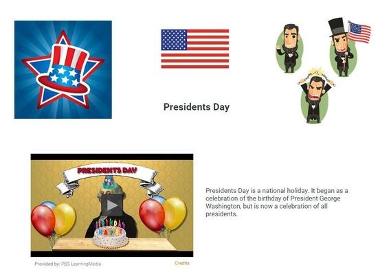 The third Monday in February is the national holiday Presidents Day. It began as a celebration of the birthday of President George Washington, but is now a celebration of all presidents. Check out this storyboard from PBS LearningMedia to see videos, read articles and learn more about Presidents Day.
