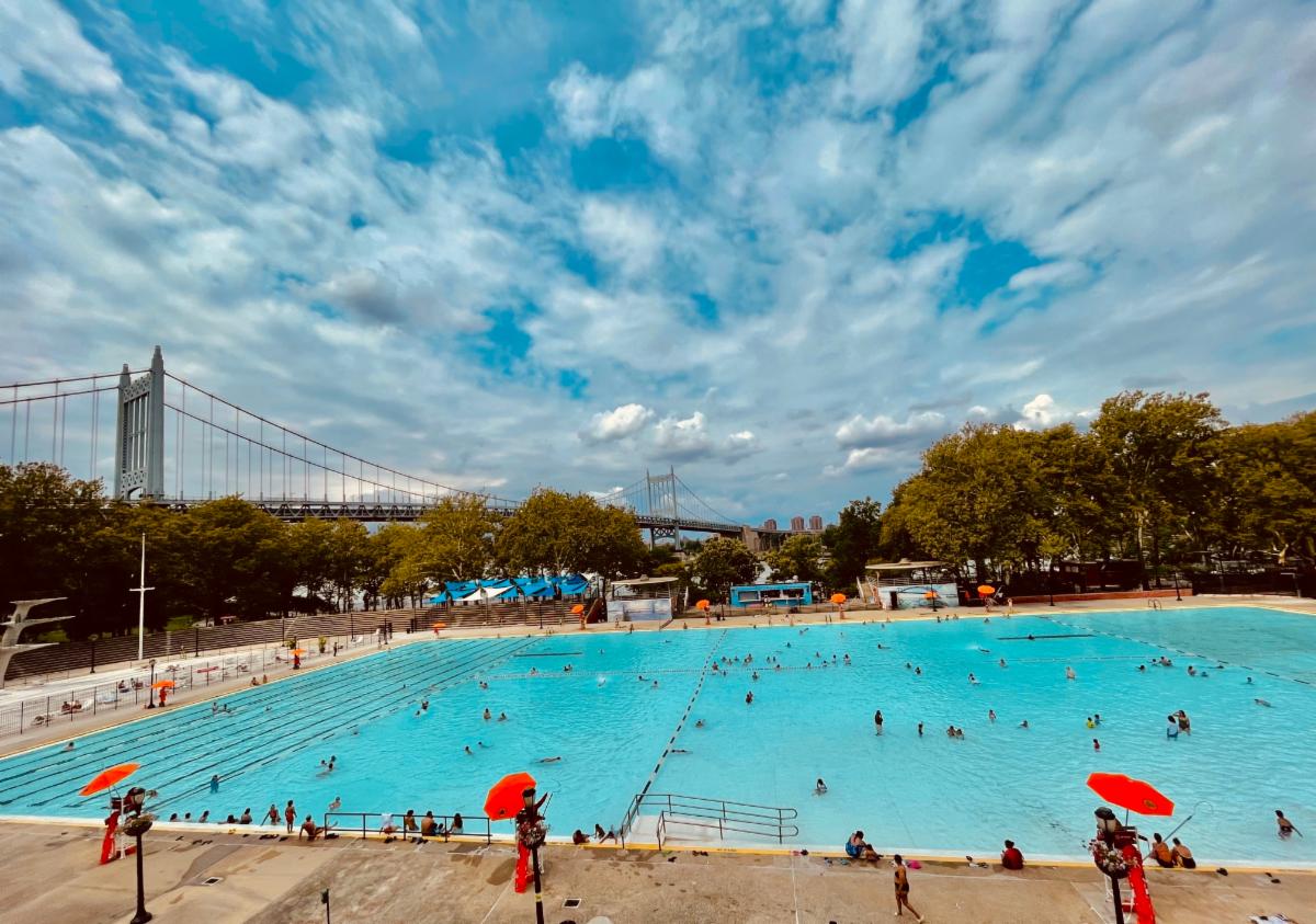 この夏はできるだけ週2回は近くの公園(Astproa Park)のプールで泳ぐようにしてます。オリンピックサイズのプールがあるんですが、公営のプール=汚い、と、夫が毎夏せっせと通うのに目もくれていませんでした。2000年からAstoriaに住んでもう21年にもなるのに1回も行っていなかったです。が、パンデミックになって、これからの人生「やるかどうか迷ったら、やる!」ことにした私は、「水清ければ魚棲まずだしな」(←違う意味ですが、汚いいところでも病気にならないくらい強くならないと、と思ったわけです)と、泳ぎに行ったら、なんと気持ちいい~!!!