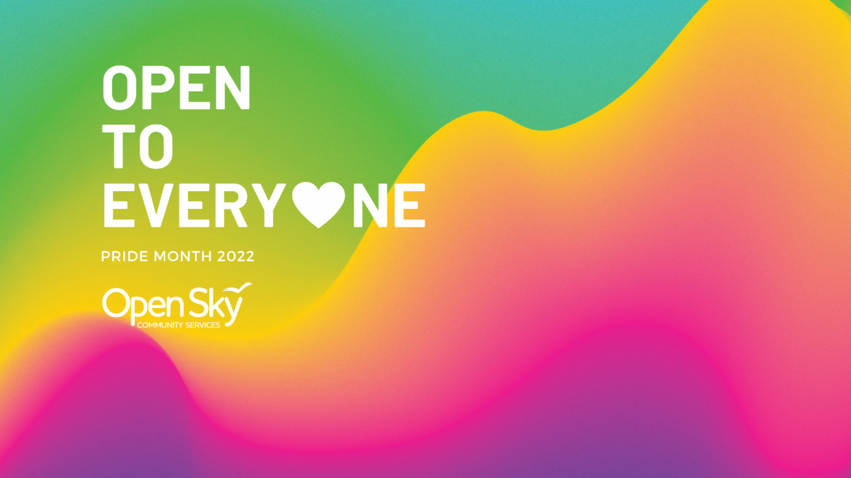 Show your allyship with Open Sky Pride-themed background for Teams and other virtual meetings. "Open to Everyone" means Open Sky celebrates diverse identities and is committed to providing a safe, inclusive and equitable space for all.