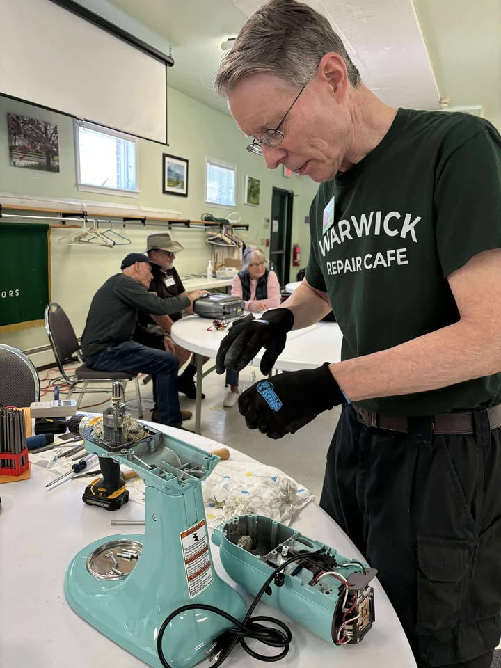 In April, RCHV coordinator Suzie Fromer was contacted by Vanessa Greeley, a professional pastry chef. She is the owner of Vanessa’s Cake Designs in Warwick, NY. She advised Suzie that she had sent three of her KitchenAid stand mixers to another state to be serviced only to get them back making “funny noises.” She said, “I could have bought a new mixer with what I spent.” Vanessa wanted to know if she could bring all three mixers to a Repair Cafe to see if we could fix them. After Suzie confirmed that a Repair Coach familiar with the mixers would be available at the Warwick Cafe, Vanessa was told to bring them in.