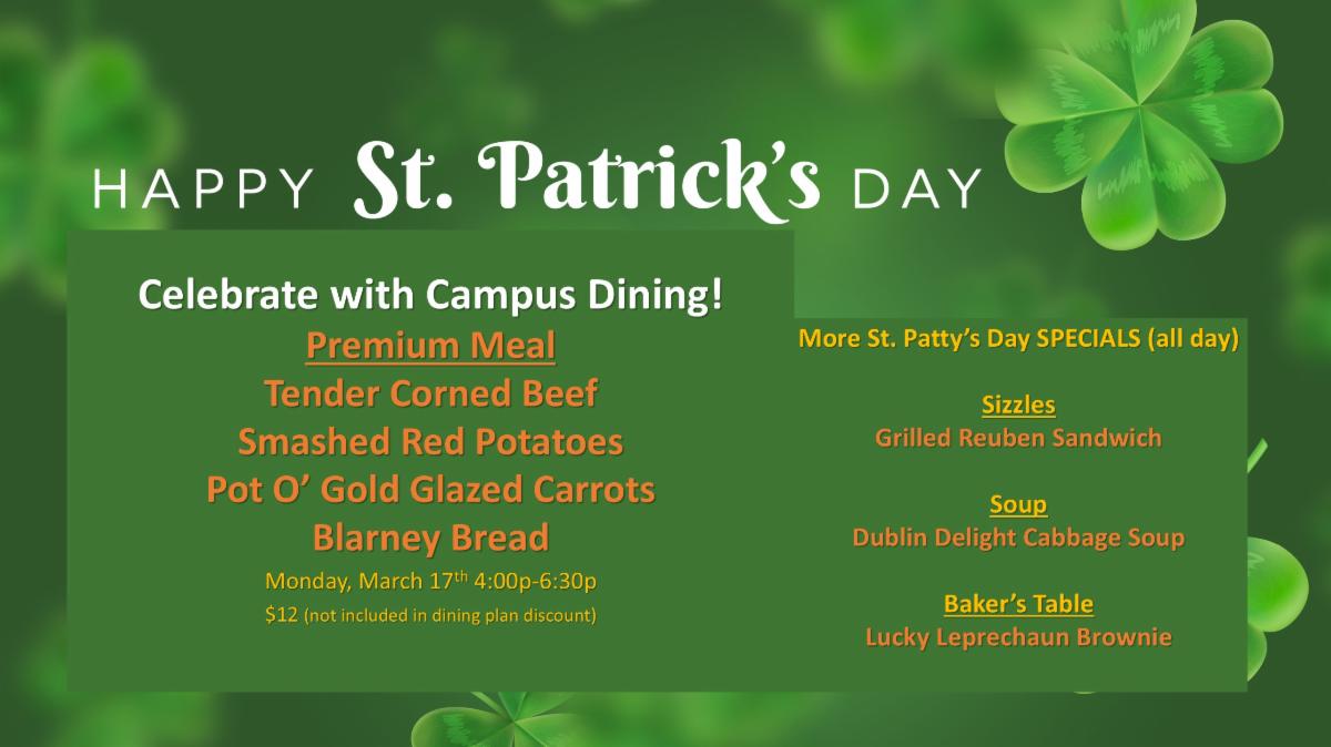 Celebrate St. Patrick's Day with Campus Dining! | |