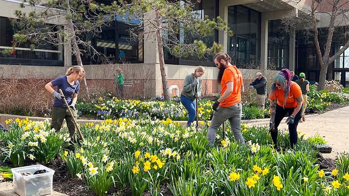 For Parkside Day, celebrated on April 10 this year, volunteers supplemented existing flower beds with perennials native to Wisconsin. The chosen plants boast useful qualities, ranging from drought tolerance to deer resistance, and species were selected to provide colorful blooms from the onset of summer well into the fall. This spring, UW-Parkside was also awarded a grant to expand its community garden and create a pollinator patch. This will create a source of seeds to propagate on campus and supplement into flower beds in the future.