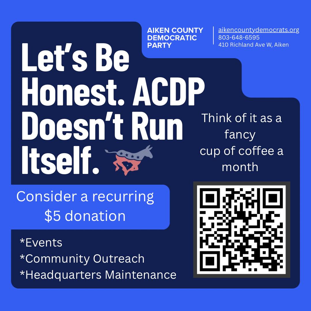 We are living through a moment that demands courage and persistence. From the White House to the State House, authoritarian power is tightening its grip, but here in Aiken we refuse to be silent or sidelined. Every call, every door knock, every sign in the street is a declaration: democracy belongs to the people.