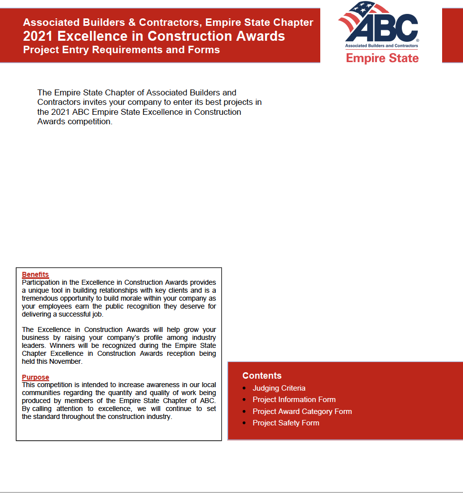 To be considered as one of the best-of-the-best, submit your company's best project, completed in either 2020 or in the early part of 2021, for a chance to be recognized with an Excellence in Construction Award at our celebration this year in Cooperstown, NY.