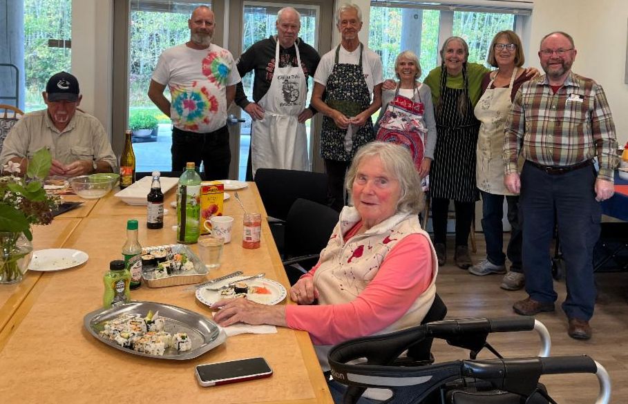 Residents gathered with sushi instructor extraordinaire, Mitar, in the common room to roll their own sushi, mixing fillings and learning a few new tricks along the way. For some, it was their first taste; for others, a fun chance to try something different. Sharing the homemade rolls afterward was as much a treat as the making. Thanks to Mitar for her time and generous donation of the sushi ingredients.