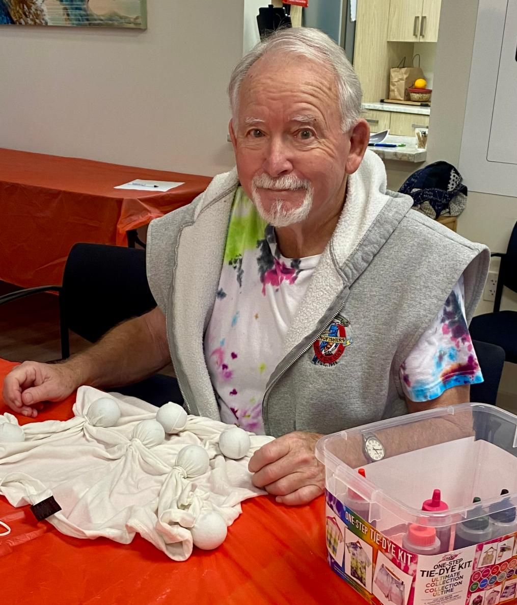 The residents have truly embraced the joy of tie-dyeing. This creative project quickly became a favourite, transforming our hallways into vibrant galleries adorned with colourful shirts and more! The laughter, camaraderie, and playful spirit shared brought everyone closer together, filling our community with warmth, creativity, and unforgettable memories.