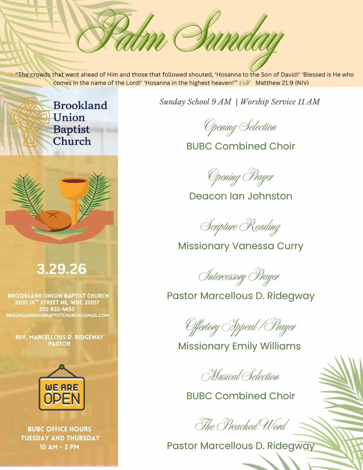 If you have any immediate concerns or questions, please reach out to Deacon Percy Davis or Pastor Ridgeway. 📞🙏🏽