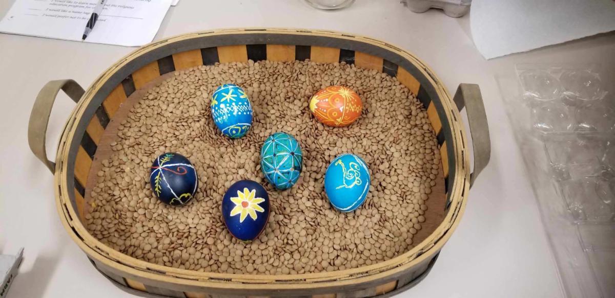 Learn how to make beautiful eggs with good company. Pysanky, similar to batik-patterns, are drawn on the egg with wax. By repeating this process with different colors of dye, a multi-colored pattern is built up. The wax is removed to reveal the previous colors.