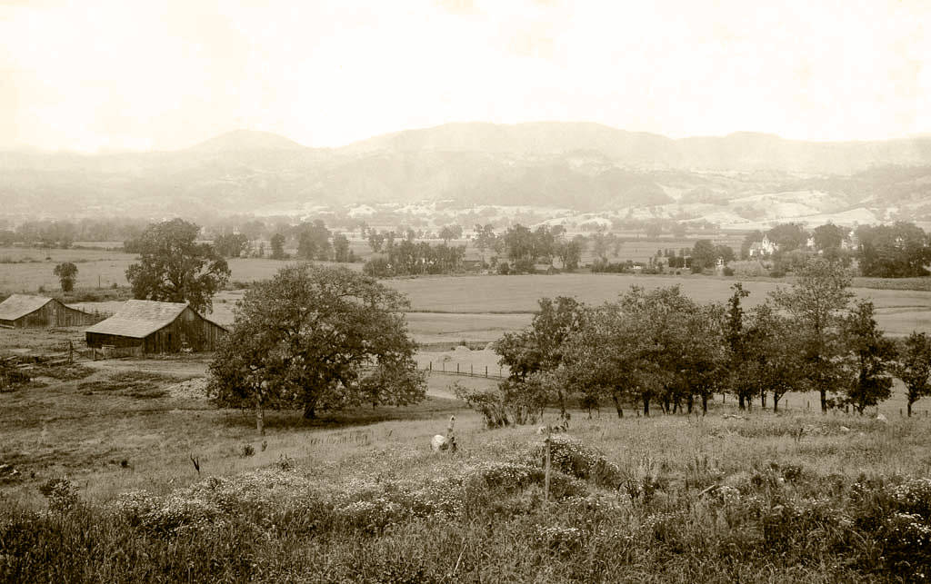 Alexander left Fitch’s employ in October 1845. He and his bride, now with a new baby, loaded his ox cart with their possessions and moved to the lovely valley that, to him, was the “brightest and best.” He received official title to his Alexander Valley ranch in September 1847, when he was 42. Cyrus eventually built a small fortune and a small community, erecting houses, a school, a church, and more than one barn, becoming known as a California agricultural pioneer. He planted orchards and vineyards and started businesses around milling, tobacco, and tanning.