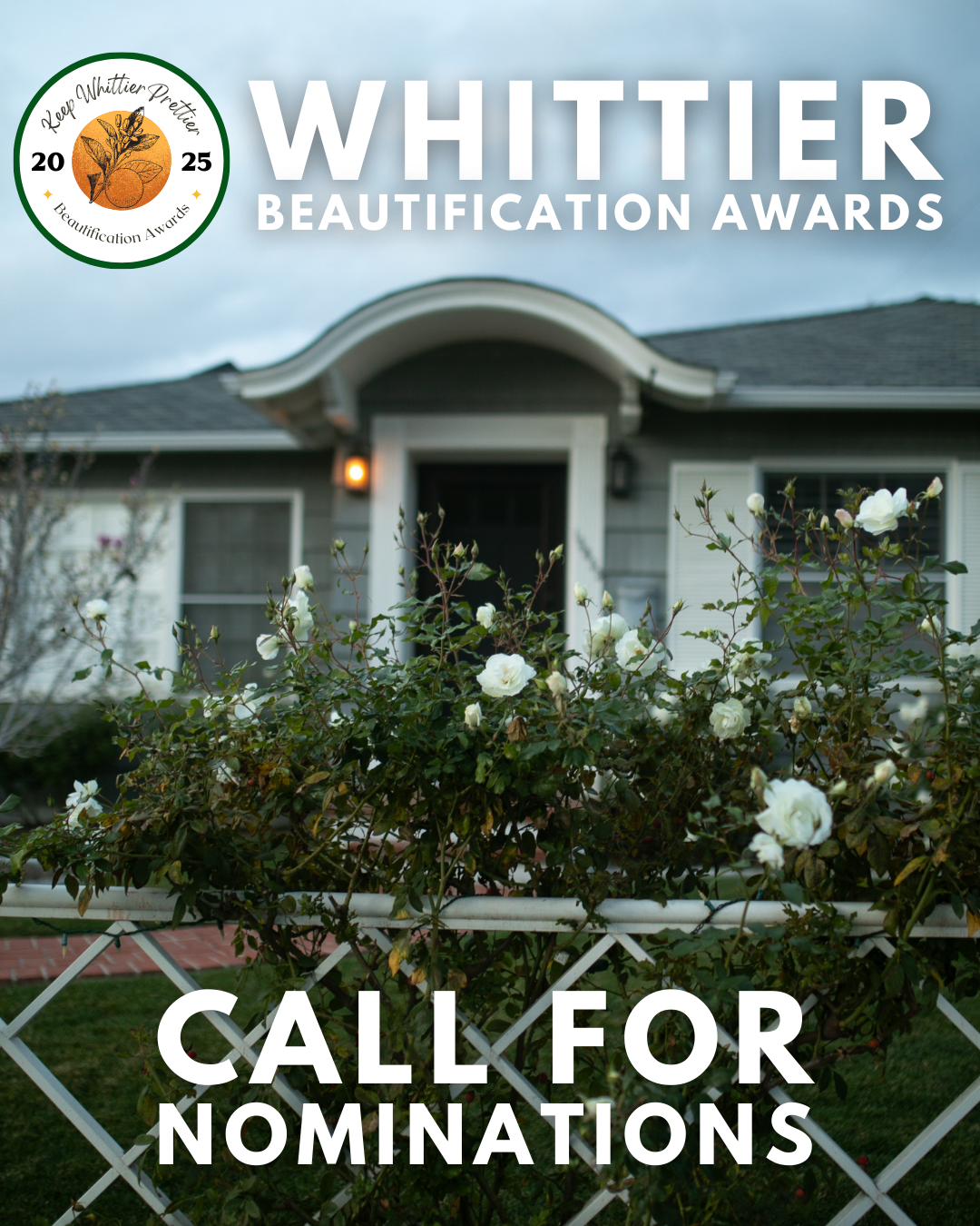 The Third Annual Whittier Beautification Awards season is here, and nominations are officially open! This community-driven program aims to recognize homeowners who take pride in their properties and help keep Whittier looking its best.