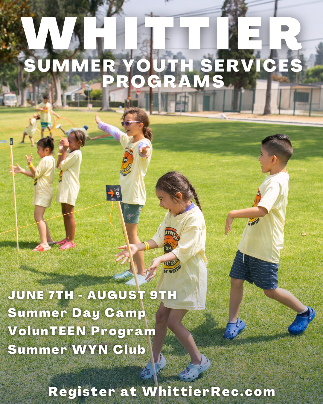 Get ready for an unforgettable summer in Whittier! Whether youâre looking for a full-day child care program, leadership opportunities, or a fun outdoor recreation experience, thereâs something for everyone. Mark your calendarsâregistration opens soon!