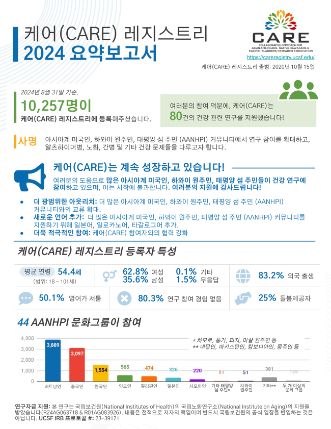 CARE를 주변 사람들과 공유하고, 아태계 (AANHPI)의 목소리가 제대로 반영될 수 있도록 하는 노력에 동참해 주세요. 우리 모두가 함께할 때, 의미 있는 변화를 이끌어낼 수 있습니다.