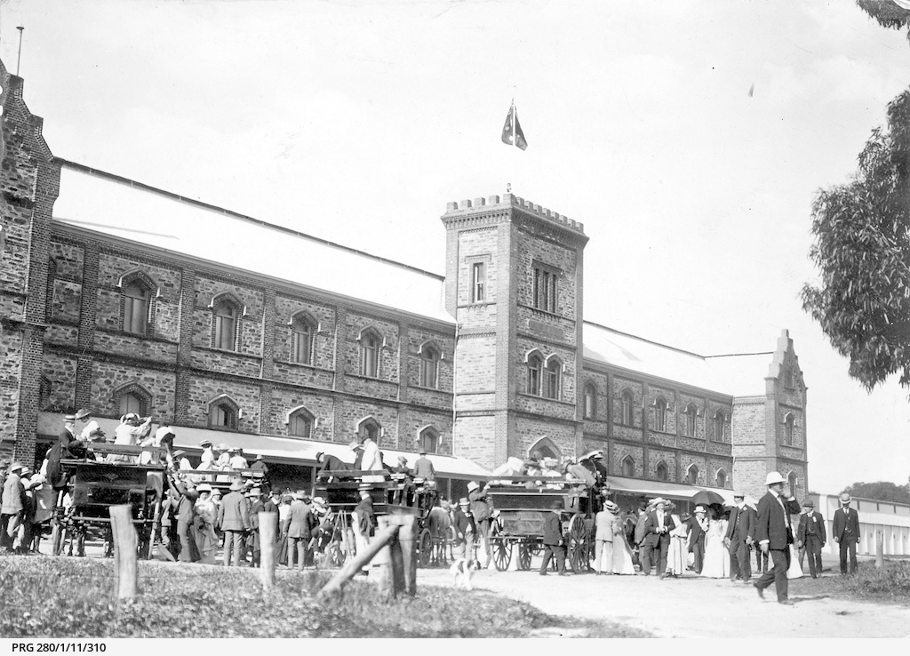 A consortium of 4 men in Adelaide, sensing opportunity in Europe's pain, saw the potential for South Australian wines on the world market and founded a business called The Adelaide Wine Company, which later changed its operating name to Chateau Tanunda. Vines were first planted here in 1845, and a winery was first established three years later. The iconic bluestone Chateau itself was built in 1890 and has been one of the Valley's most recognized landmarks. The building of the Chateau, at the time, was the largest building in South Australia and the largest winery in the Southern Hemisphere. Construction took two years to complete and was inspired by a French Bavarian style. The length of a football field, its cellars’ walls were three feet thick and could store 1.5 million gallons of wine. Its south cellars were cut into the side of a hill for better temperature-controlled aging.