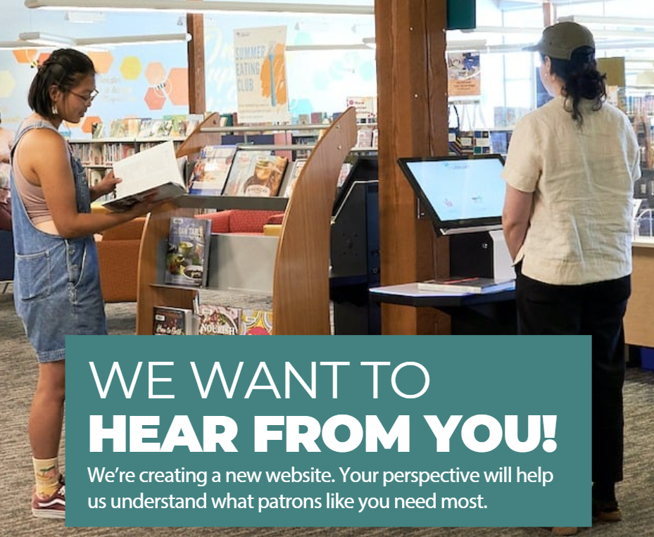 Your perspective will help us understand what patrons like you need most from the library website. The library is for you, and we're here to meet your needs.