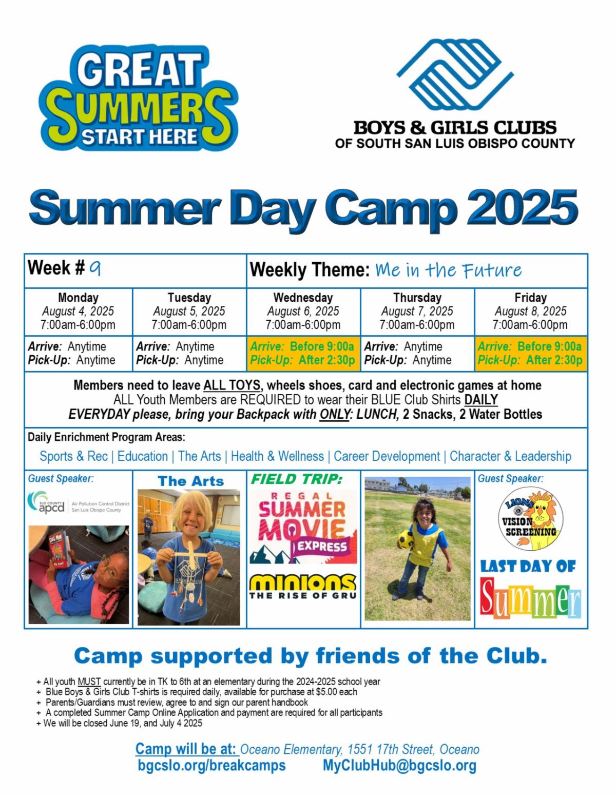 • A blue Boys & Girls Club T-shirt is required daily ($5 each, available for purchase).