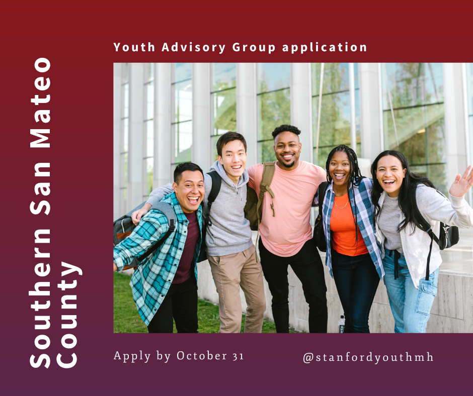 Stanford Psychiatry's Center for Youth Mental Health and Wellbeing is looking to expand their Youth Advisory Group. Open to youth 16 to 25 in Southern San Mateo County, with a strong interest in youth mental health. Applications close October 31, 2022.