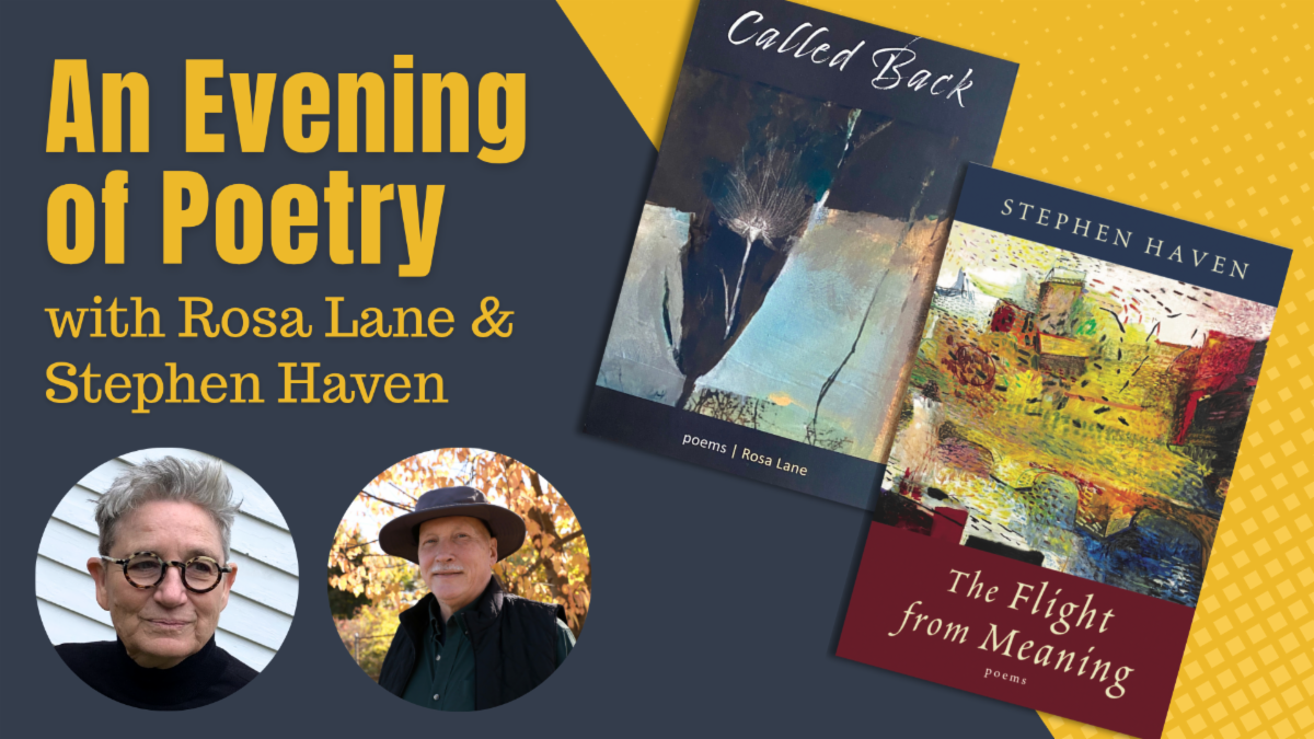 Join celebrated poets Rosa Lane and Stephen Haven for an evening of poetry in the Meeting Rooms. Rosa will read from Called Back, her fourth collection inspired by Emily Dickinson’s final words, offering an LGBTQ+ perspective rooted in the latest scholarship. Stephen will share poems from The Flight from Meaning, exploring American history, religion, and the legacy of racism.