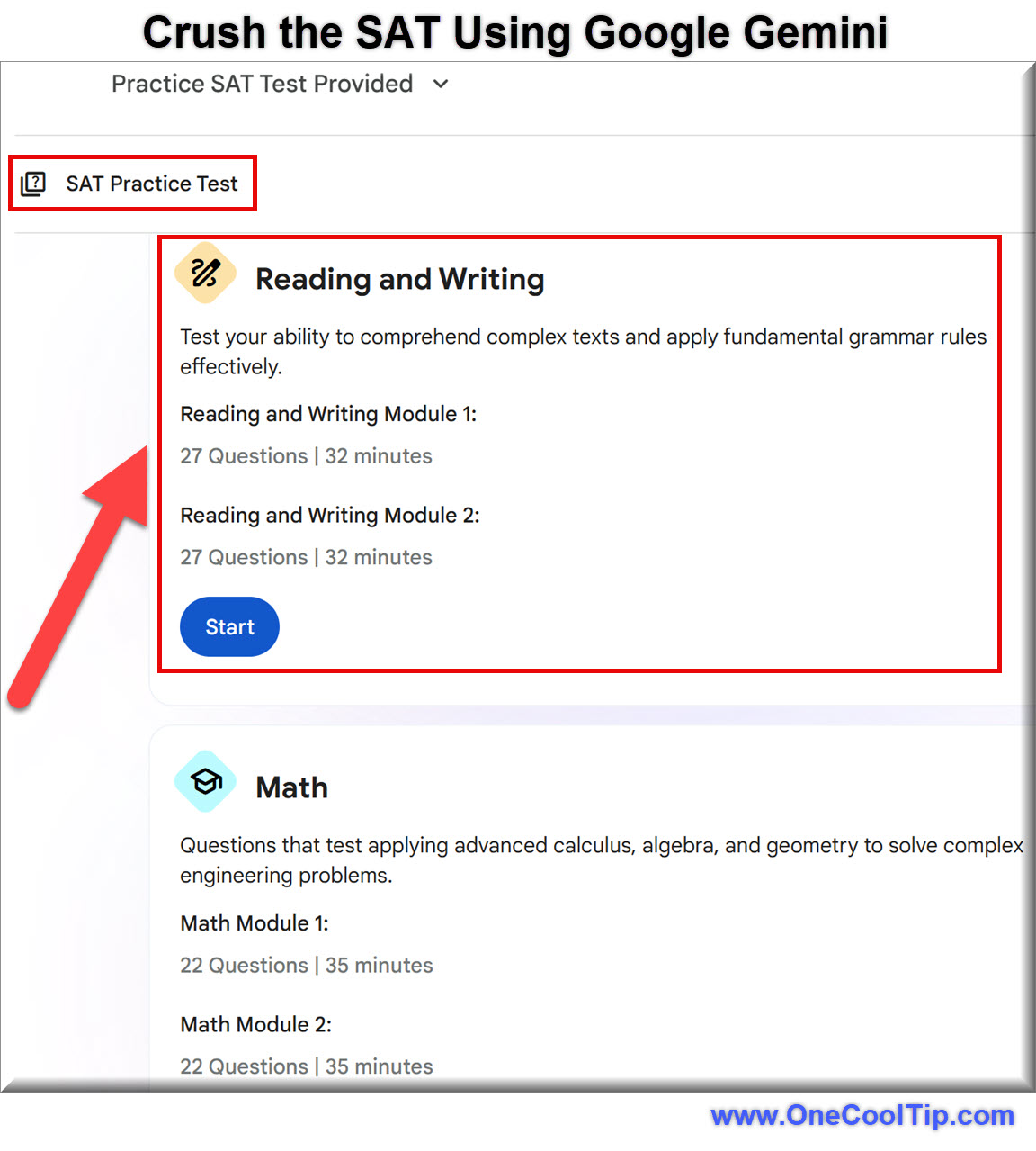 Google has integrated full-length SAT practice tests directly into Gemini.