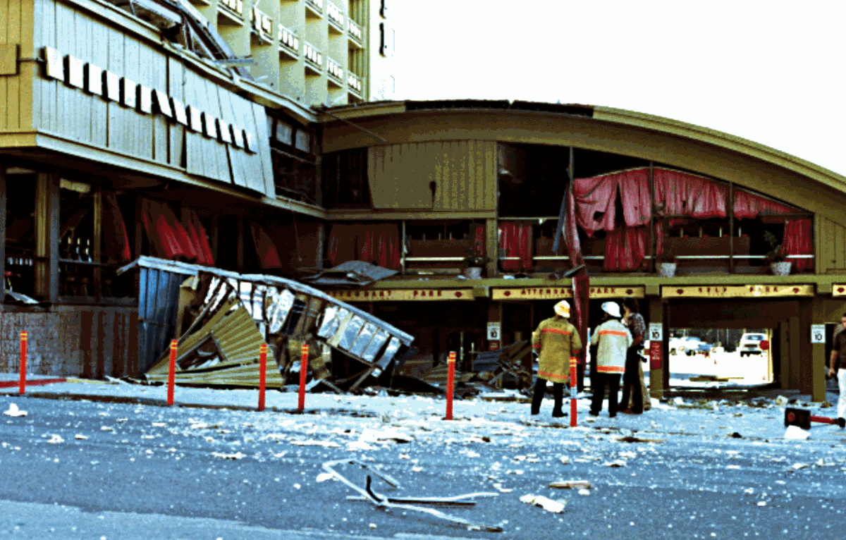 Suddenly, a powerful blast ripped through the building. The massive detonation created a five-story cavity 40 to 50 feet in diameter in the center of the gaming floor and hotel tower. Inspectors found buckled girders, cracked walls, twisted rebar, dangling toilets and destroyed gaming machines.