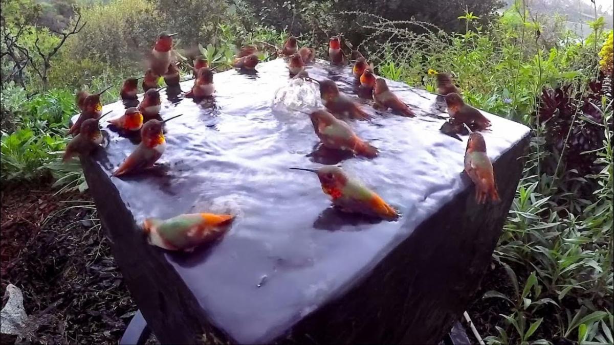 Hope the new school year is going swimmingly! A record 30 hummingbirds bathe together during this morning’s wash at Gottlieb Native Garden, Beverly Hills, CA (www.thegottliebnativegarden.com).
