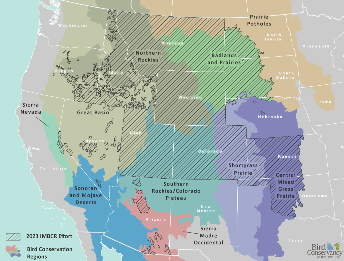 Integrated Monitoring in Bird Conservation Regions (IMBCR) is a breeding landbird monitoring program that spans the Great Plains to the Great Basin. A nested, probabilistic sampling design allows us to make inference about bird populations at multiple scales across public and private lands. Click here for more information about the program including the IMBCR vision and mission statement.