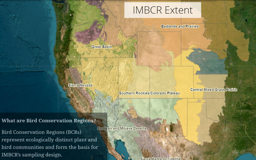 We have an IMBCR Story Map! Learn about the IMBCR program including its objectives, the sampling design, field methods, and how the results are used to inform management and conservation decisions. You can pan in and out of the IMBCR footprint to view various strata within each state. Please share the Story Map with anyone who might be interested in learning about the program!