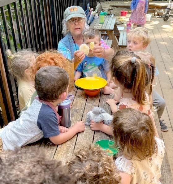 Morah Celia with her circle of baby bears exploring apples and honey | |