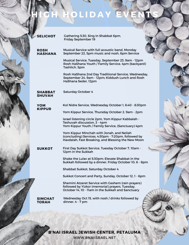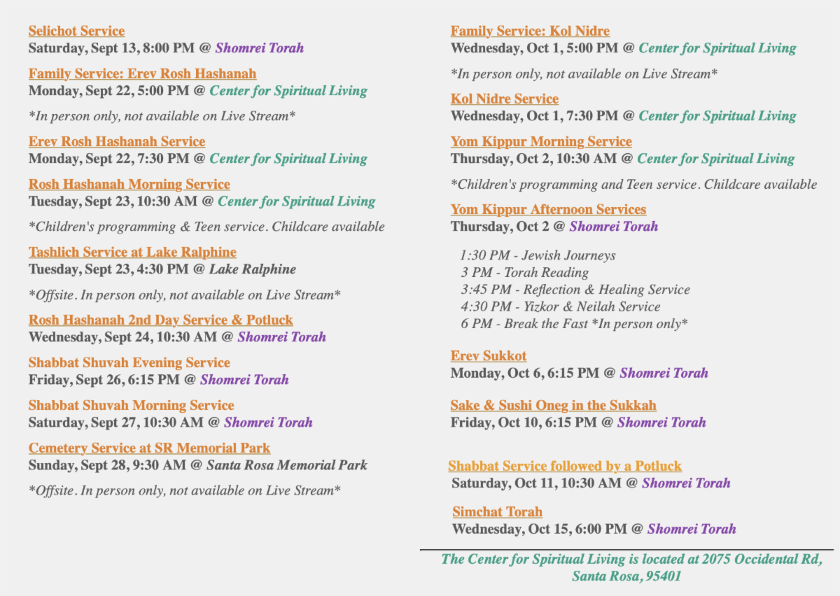 | | NOTE: This is an on-going group, continuing after the High Holidays through November and December. | | 2025 HIGH HOLY DAYS ROSH HASHANAH | |