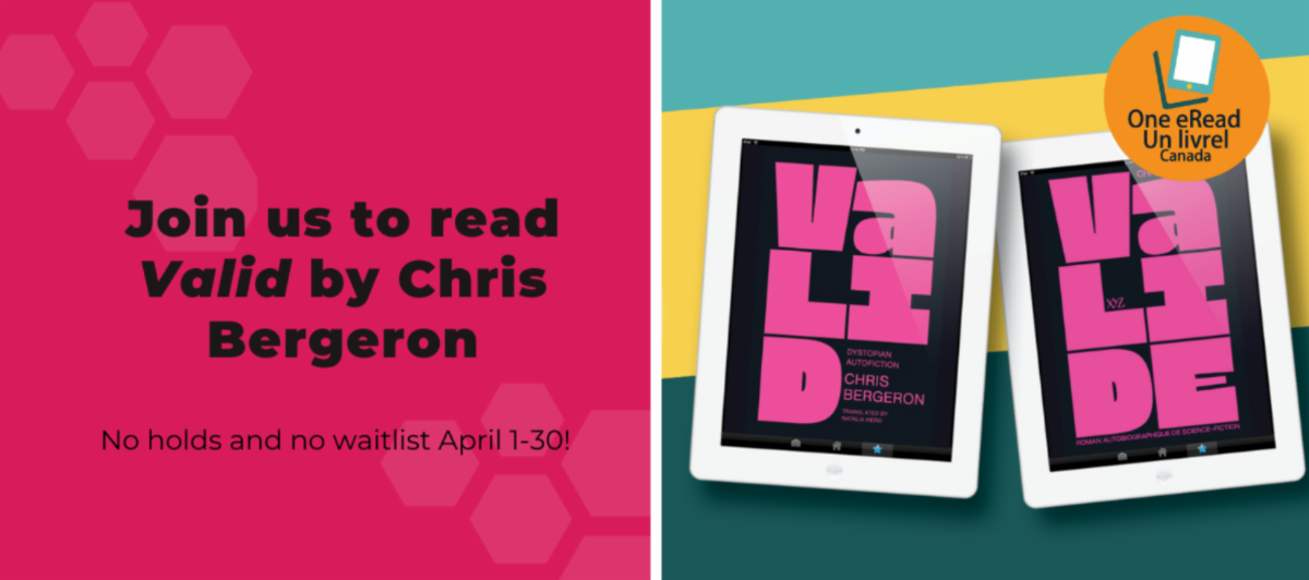 This April, join readers across the country for One eRead Canada, a nationwide digital book club! This year's featured title is Valid by Chris Bergeron โ a thought-provoking novel available free on Libby in eBook and audiobook formats, with no holds or waitlists.