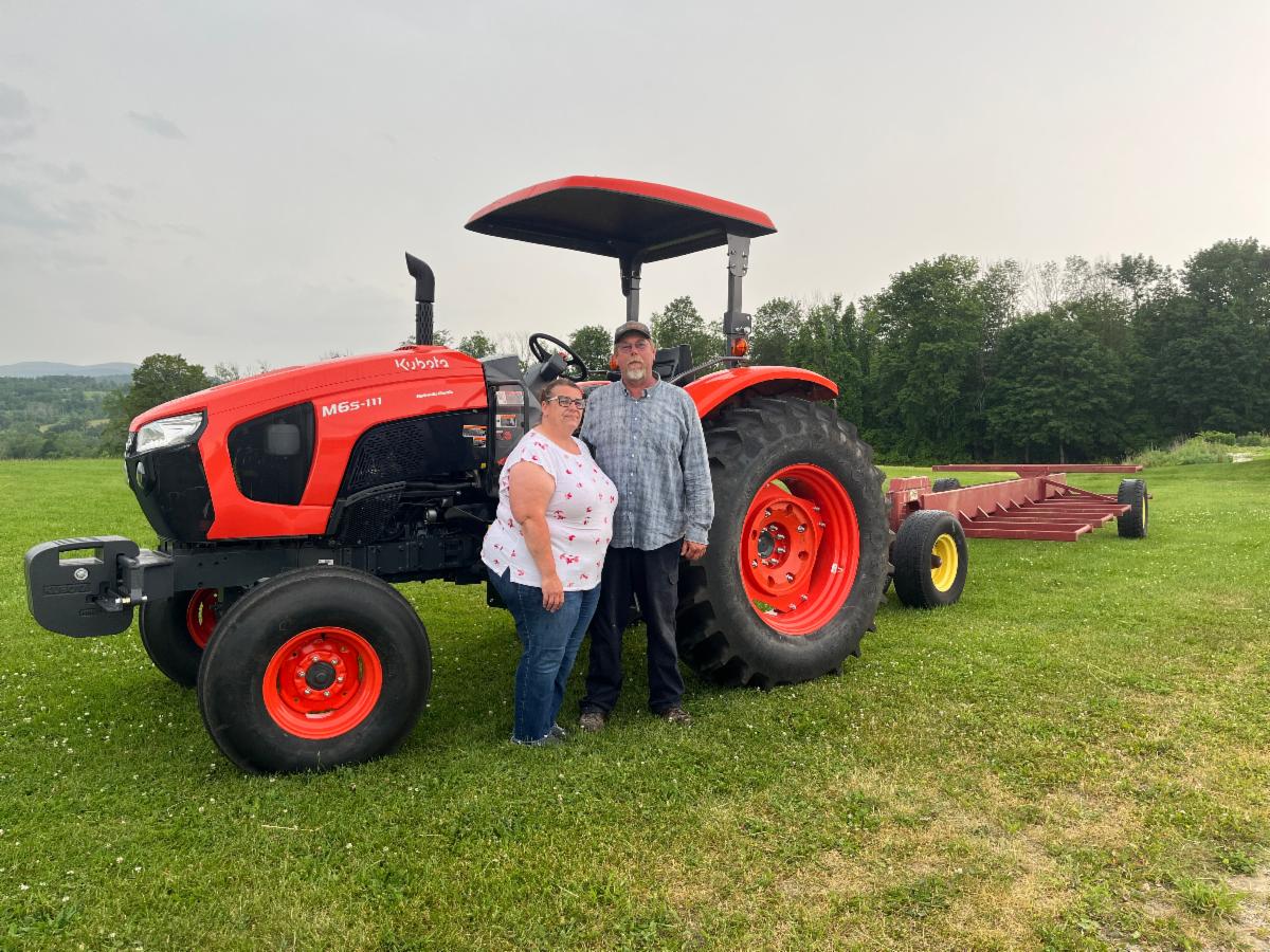 A 100-year-old family farm in Adams, MA, now has a new Tier 4 emissions tractor – a highly energy-efficient, low-emissions tractor! Ayrhill Farm purchased the tractor thanks to a grant from Massachusetts Department of Agriculture’s Climate Smart for Agriculture Program (CSAP) – and thanks to BAV's grant-writing support. Ben Crockett, our Climate Smart Agriculture Program Manager, helped connect farmers Jason Hoellerich and Chrissy Satko (pictured above) with the CSAP grant opportunity, and paired them with an expert grant-writer, with BAV covering the majority of the grant-writing cost. The result was a successful CSAP grant award of $50,000 toward the purchase of this cutting-edge equipment. Best of all, the tractor was up and running in time for this year’s growing season! Ayrhill's hay operation now serves 10+ area livestock farms - more cleanly and “greenly” than ever before. It’s a win for Ayrhill, its partner farms, and the local environment. Ben was pleased to visit the farm on a recent afternoon to see the new tractor first hand and celebrate the achievement.