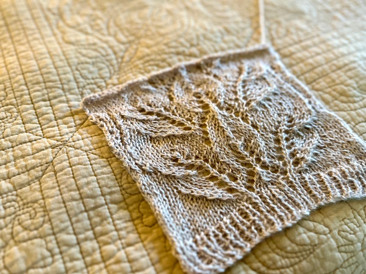 We swatched Riley for the Leafy Lace tank top sleeveless sweater that looks really easy to make. That's the lace swatch that you see in the top photo.