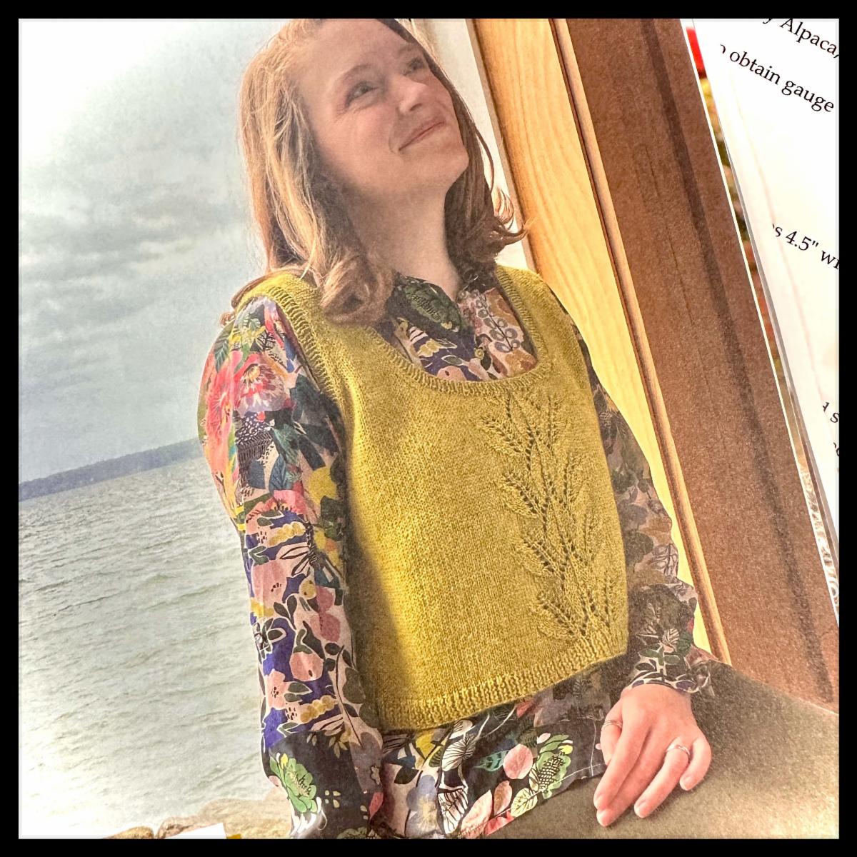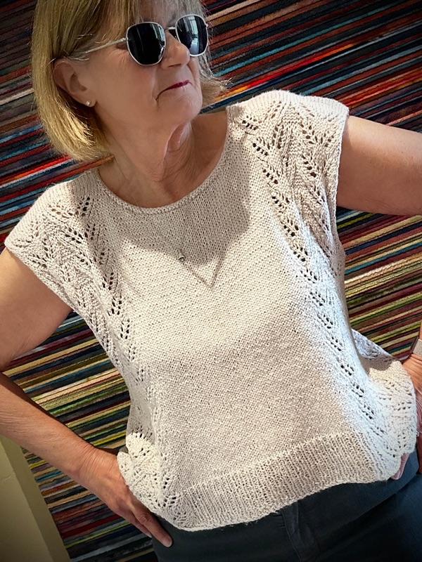Often there's a little bit of interest in a rib or a cable or with lace. The yarns are lighter weight so that the garment can be worn in warmer weather or as a vest over a lightweight shirt.