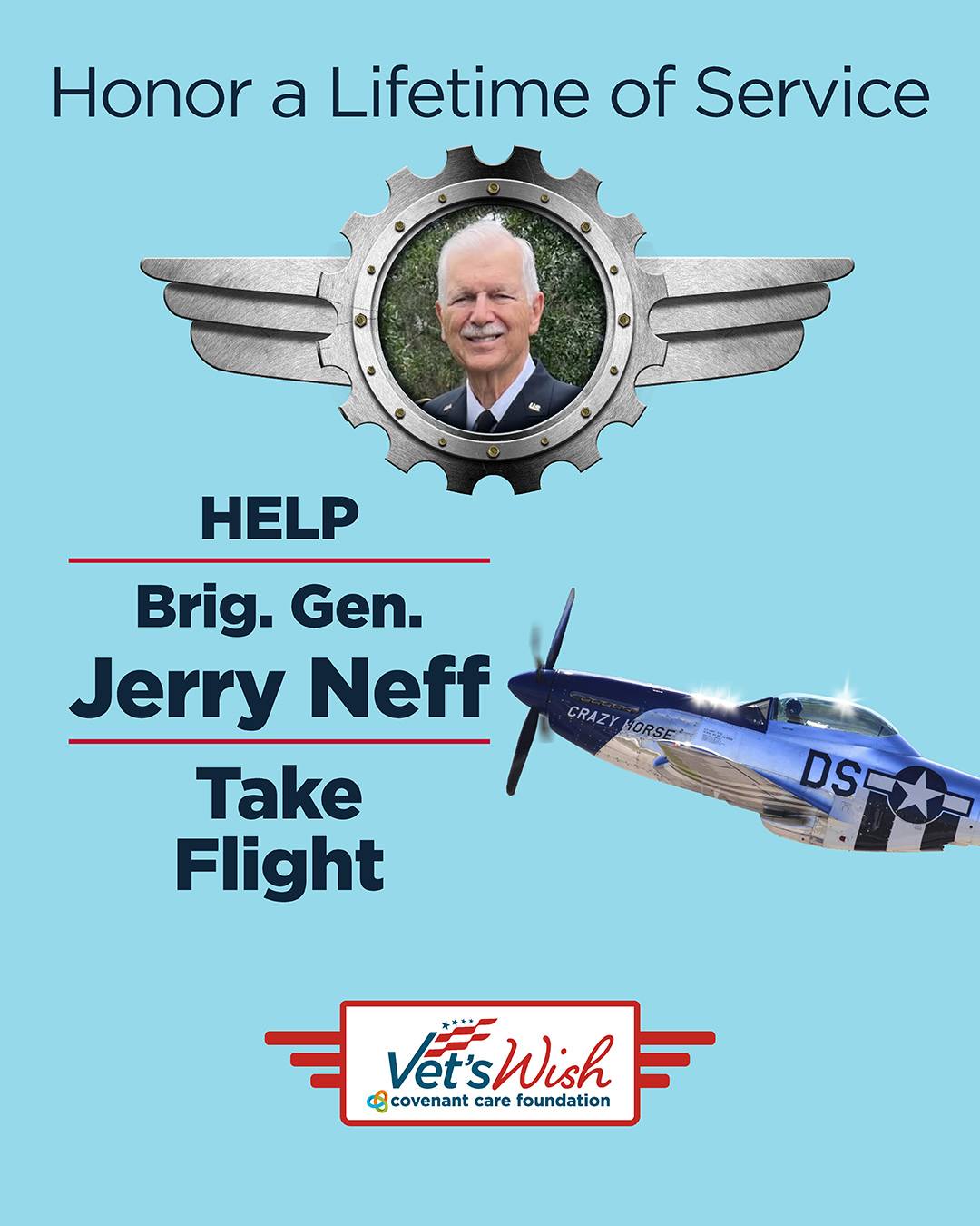 | | This Memorial Day Weekend, a lifelong dream is preparing for takeoff, and you can help make it soar. We invite you to join us in supporting Stallion 51 Flight Operations and Covenant Care as they team up to grant a powerful Vet’s Wish for retired U.S. Army Brigadier General Jerry Neff. A decorated veteran and 2024 inductee into the Florida Veterans’ Hall of Fame, General Neff has one final wish: to fly the legendary P-51 Mustang, the iconic WWII fighter that represents the courage of America’s greatest generation. Thanks to the dedication of Covenant Care and the Vet’s Wish program, plans are underway for General Neff’s flight at Stallion 51, located at Kissimmee Gateway Airport, this Memorial Day Weekend, but your support is crucial to bring this mission to life. Together, let’s salute service, legacy, and the dreams that never fade. Every contribution helps us get one step closer to liftoff. 👉 Donate today to help fulfill a hero’s wish. | | |
