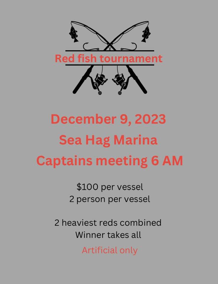 | We don't have a good handle on this Redfish Tournament coming here on December 9th, but I'm sure there will be a showdown! If your tired of the holiday festivities, come try your skills in this winner take all redfish tournament! | |