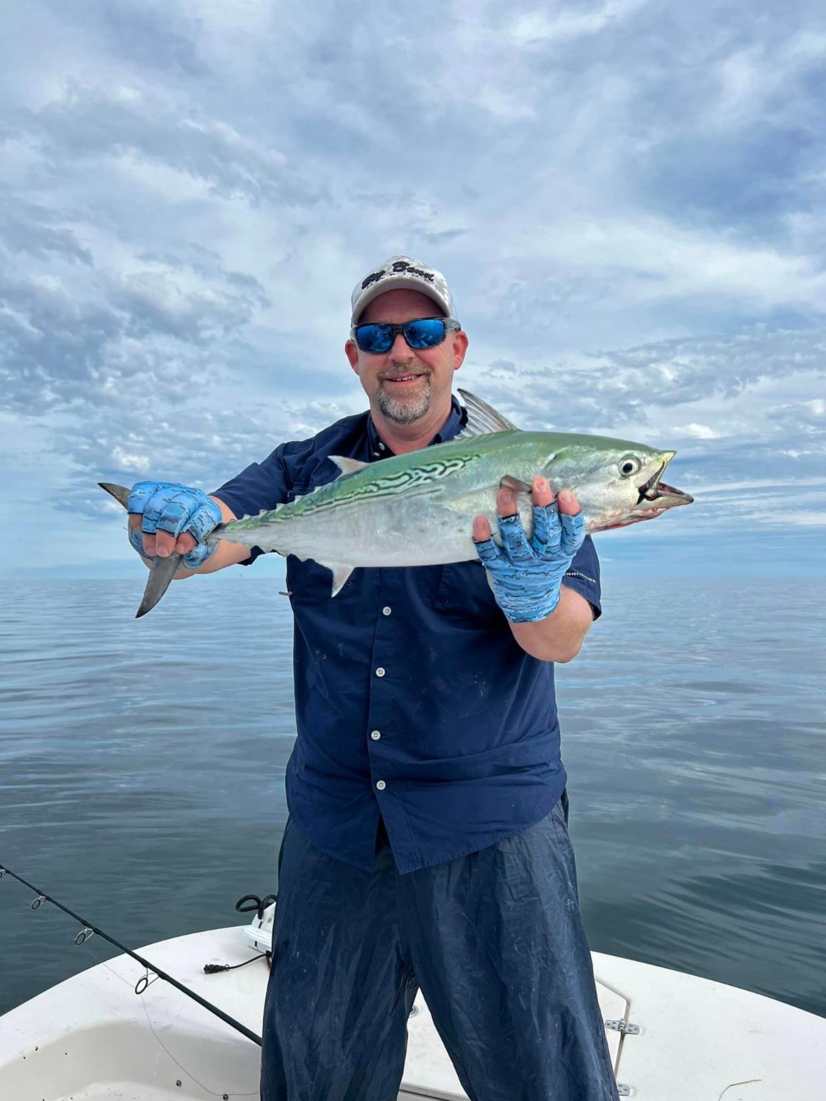 | Todd Jackson, along with his brother-in-law, Stephen Scott, and best bud, Vince Mcgreggor, caught this bonita on a topwater plug! | |