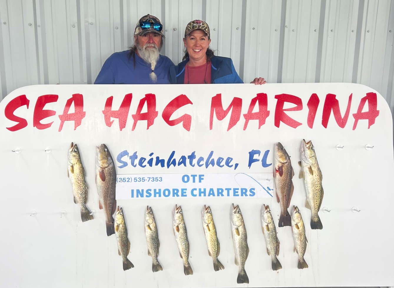 Couple, Mandy and Steve, caught redfish and trout while spending time together, during their trip with Capt. Chris Chico Graham of OTF Inshore Charters.