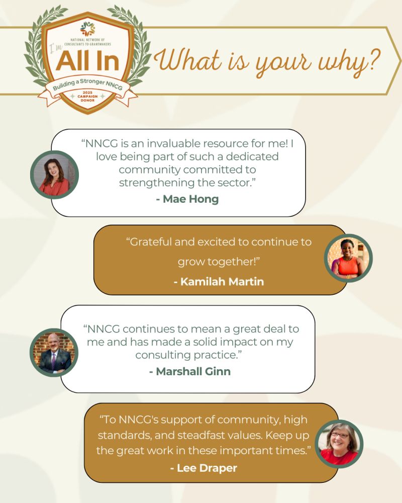 The National Network of Consultants to Grantmakers (NNCG) is a learning community and forum for open discussion among consultants dedicated to strengthening philanthropy and increasing its impact.