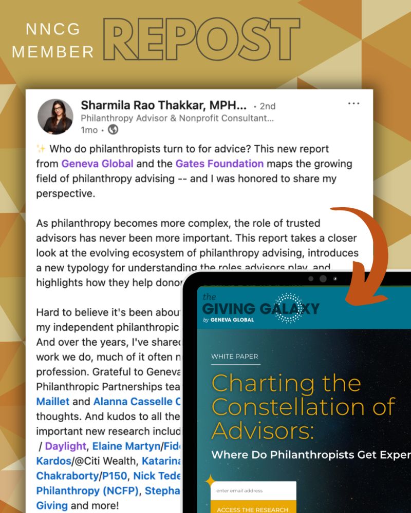 Thanks to NNCG member Sharmila Rao Thakkar for highlighting a new report from Geneva Global and the Gates Foundation, mapping the growing field of philanthropy advising. 🙌 Read More