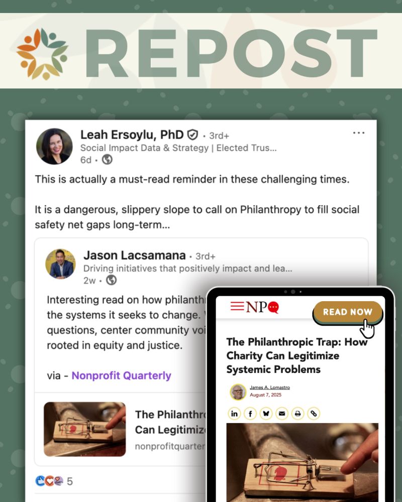 Thanks to NNCG member Leah Ersoylu, PhD for sharing a thought-provoking article 💡 from Nonprofit Quarterly, highlighting how philanthropy can unintentionally sustain the systems it seeks to change. Read More