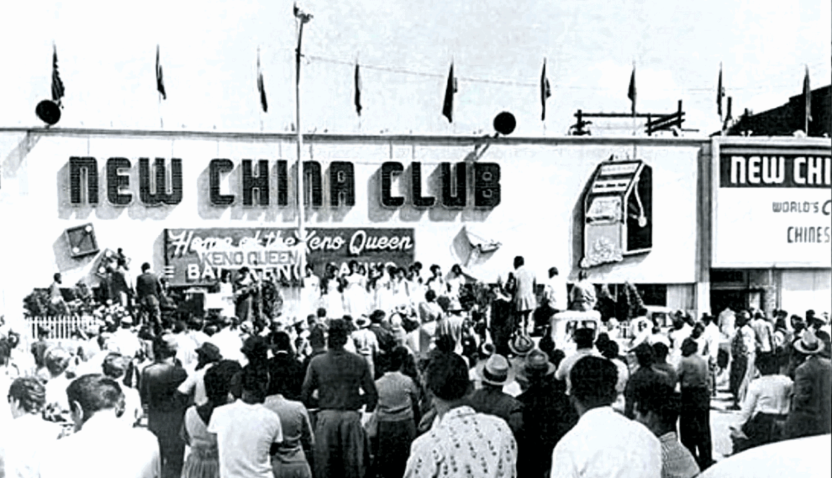 The club was significant for its inclusivity, welcoming patrons of all races at a time when racial segregation was prevalent in many other casinos. Located at 260 Lake Street, the club was situated in what had been the Palm Saloon. The New China Club featured a variety of gambling options, including 21, dice, roulette, keno, and slot machines, and was noted for introducing the first legal fan tan and pai gow games in Nevada.