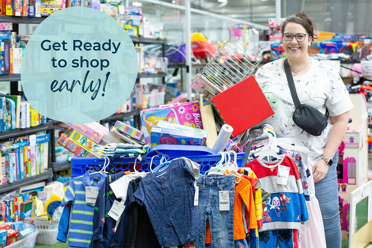 While your clothing items are being reviewed, grab your toys, equipment and large items and place on the sales floor. We will text you when your clothing is ready to go!