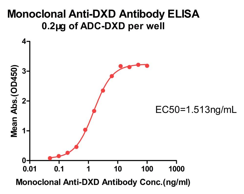 Immobilized ADC-DXD at 2 μg/mL (100 μL/well) can bind Monoclonal Anti-DXD Antibody (Cat. No. DXD-S222) with a linear range of 0.05-1.56 ng/mL (QC tested).