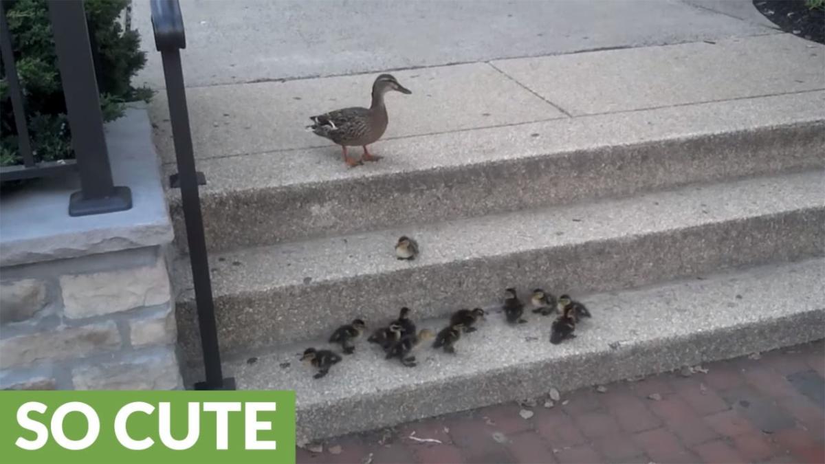 How can you get your ducks in a row? A mother duck looks on while her 12 adorable ducklings attempt to overcome a very large obstacle -- the stairs. Will they make it? Watch and find out!