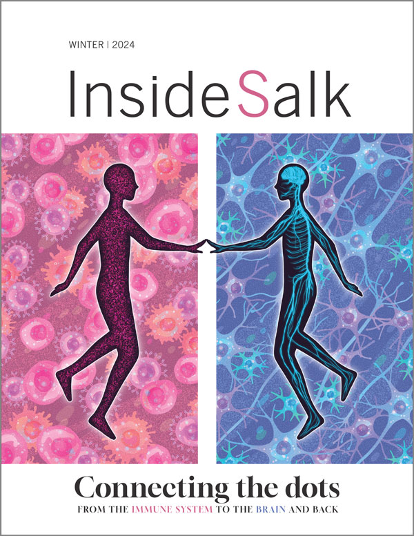 Marking the end of our āYear of Healthy Aging,ā the winter 2024 edition of Inside Salk shines a light on neuroimmunologyāan exciting cross-disciplinary field that pairs immune and nervous systems to ask questions about human health and disease. Beyond a feature on this emerging research area, we chat with Salk Fellow Talmo Pereira about his AI-based motion-tracking technology; Harnessing Plants Initiativeās program manager Kay Watt about mitigating climate change; and postdoctoral researcher Pau Esparza-Moltó about mitochondriaās role in healthy aging. Visit Inside Salk online now, and join our mailing list to receive the latest issues right to your door. | |