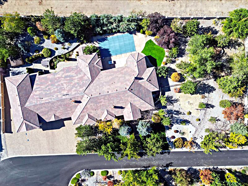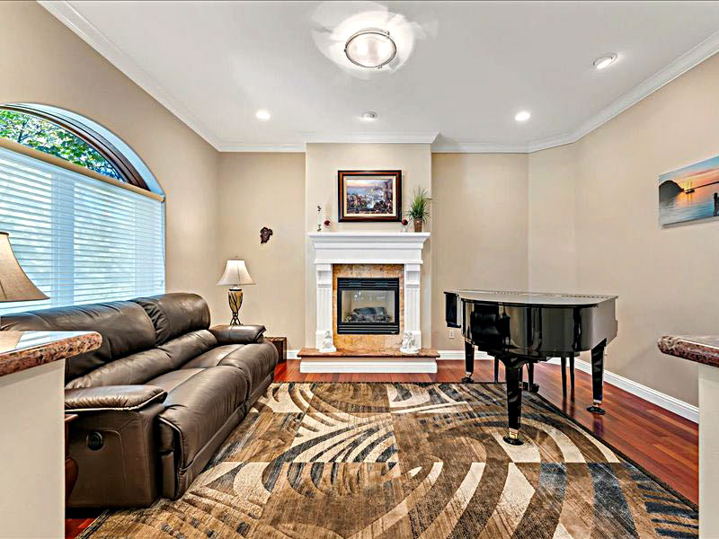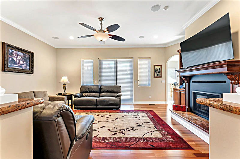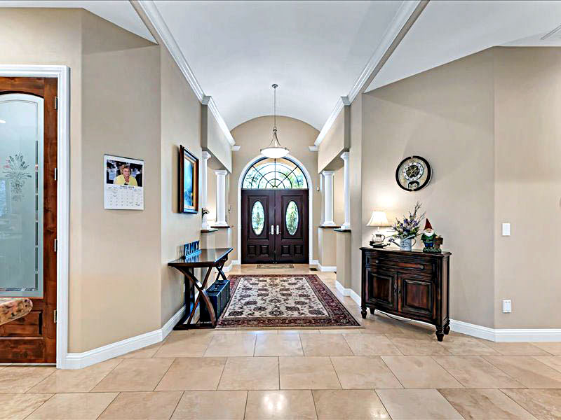 And if you’re into entertaining, this place has you covered. There’s a custom home theater, a wine fridge big enough to keep the collection ready for guests, an in-ground pool, and a garage setup that’s a car lover’s dream.