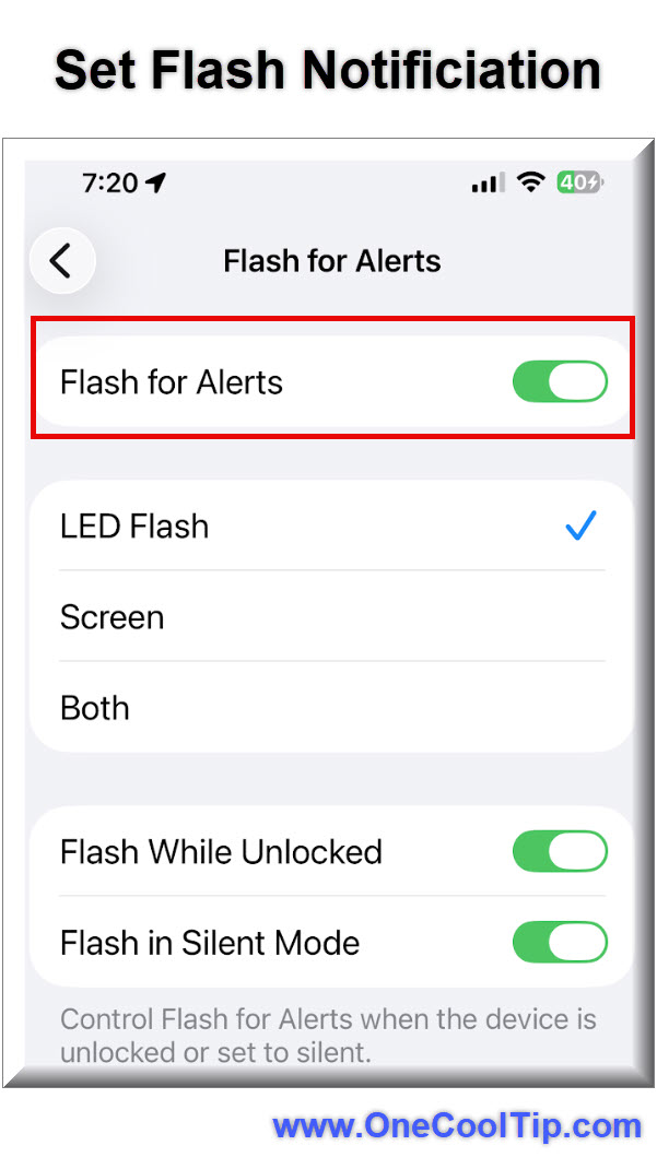 Instead of relying only on sound or vibration, the iPhone flashes either: