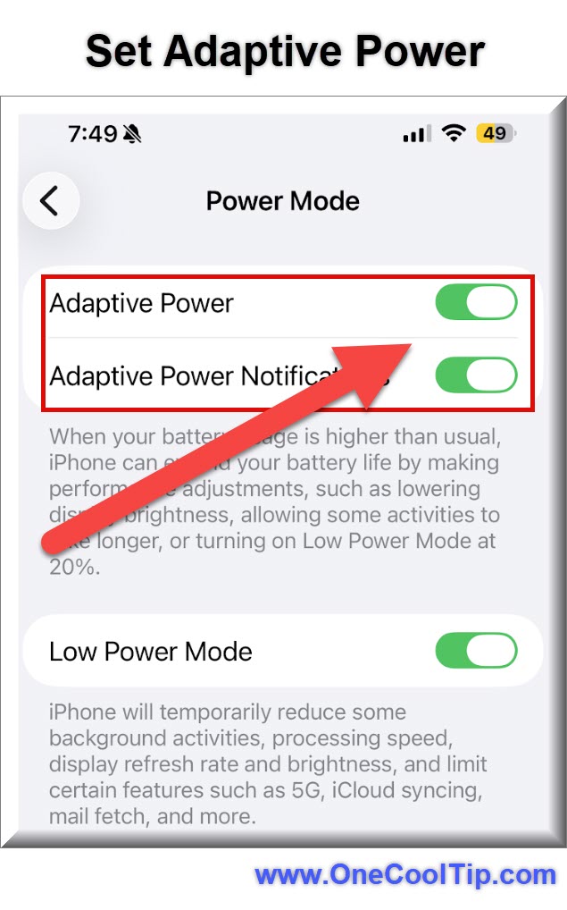 Toggle Adaptive Power to On.